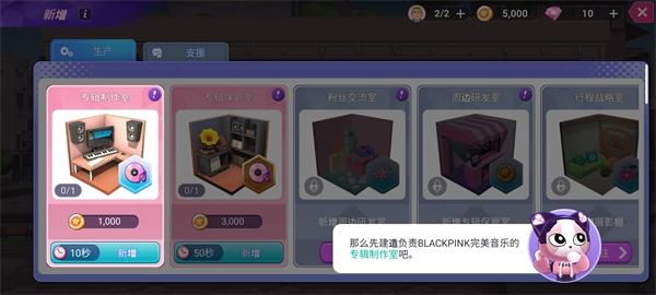 3、游戏融入了建造的玩法,玩家需要再不断的升级中建造各种不同的场馆,为艺人提供更多的游戏场景。