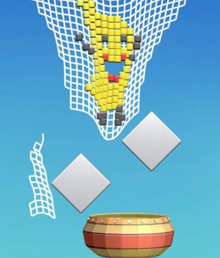 丰富的关卡等你来体验,玩起来很过瘾,全新的益智休闲玩法,扯破网并让上面的方块落入桶中。
