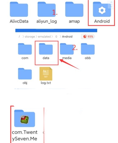 2、然后进入全部文件夹,找到【Android】→【data】→找到甜瓜模拟器的图标或者包名【com.TwentySeven.MelonPlayground】→【files】→【Mods】