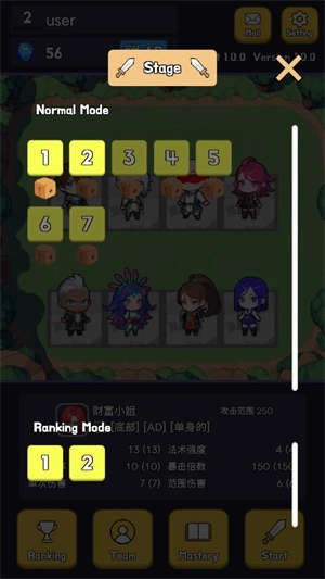 3、点击start后有两种模式可以选择,上方的normal是普通模式,下方的ranking是排位模式,选择对应的模式就可以开始游玩。