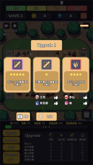 1、有多个英雄可以自由选择去进行放置,有趣的塔防玩法可以给你带来新的乐趣。