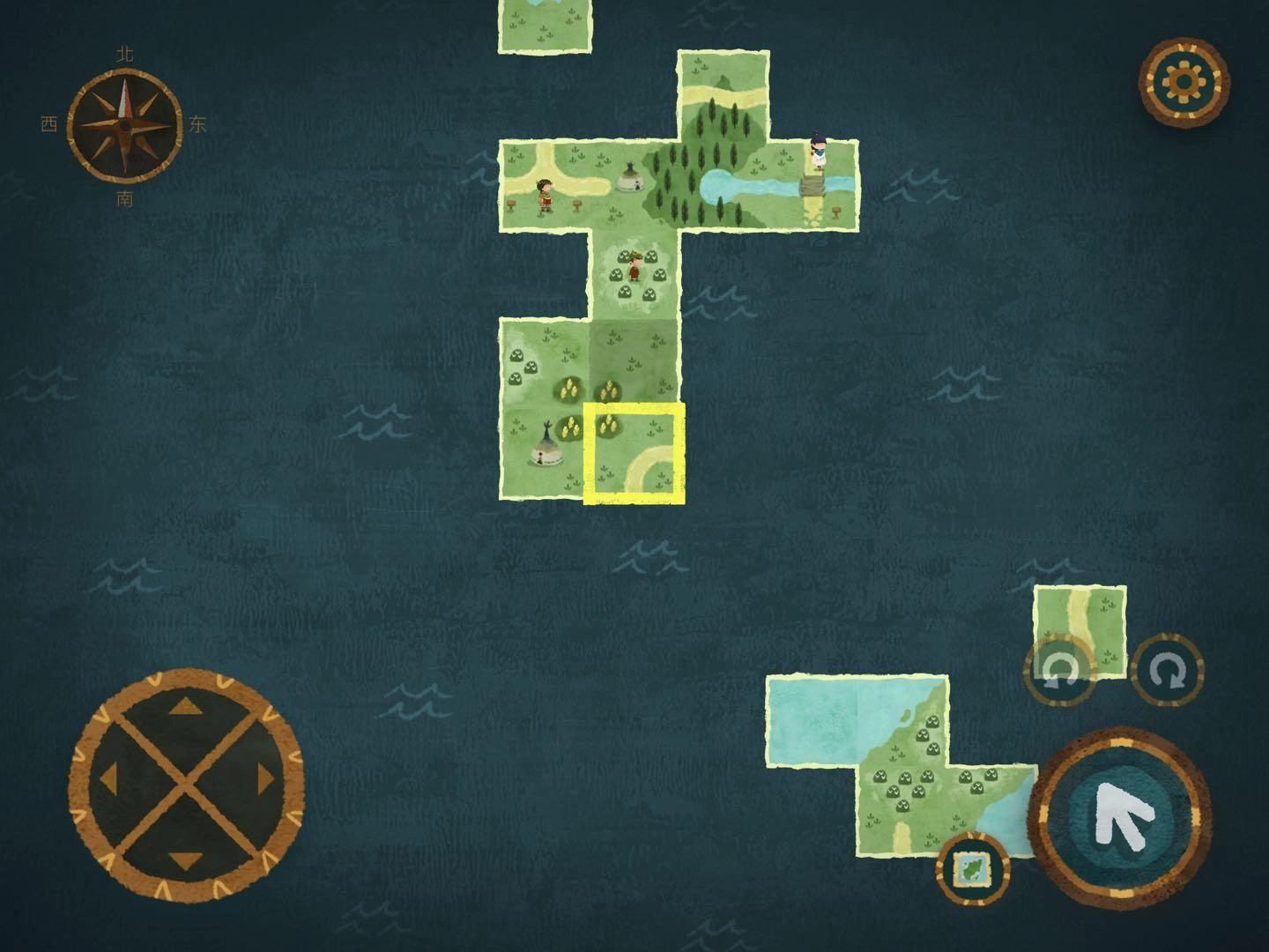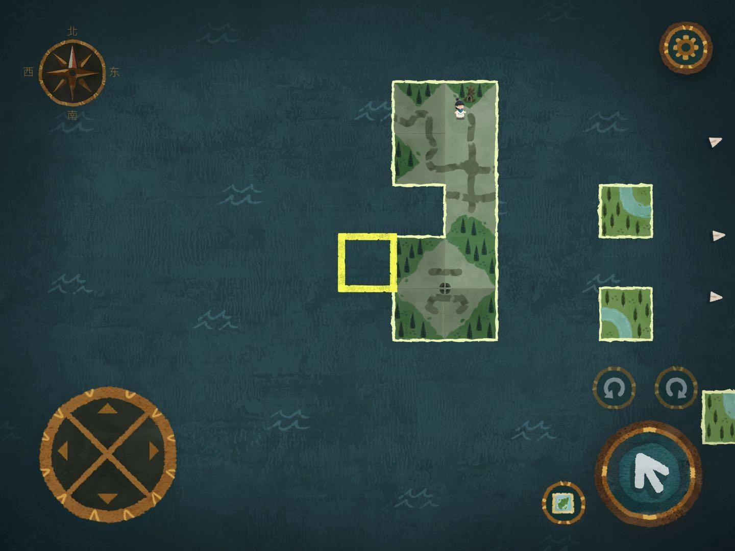 3.寻找森林的路2,同样的规则,把地图碎片放到树倒方向即可,进入地图碎片时出现音符即正确,出现问号时即错误