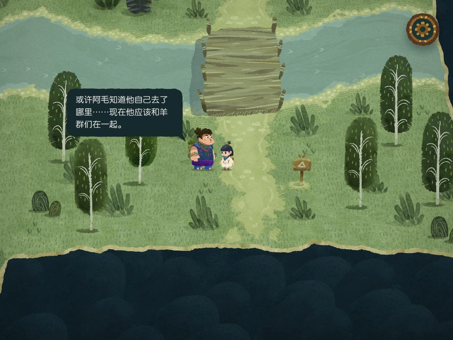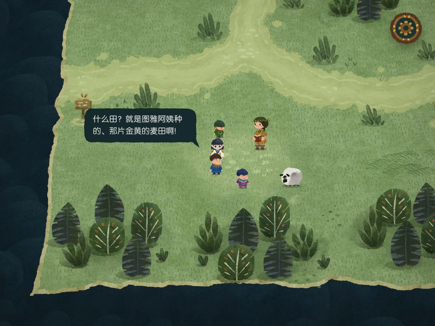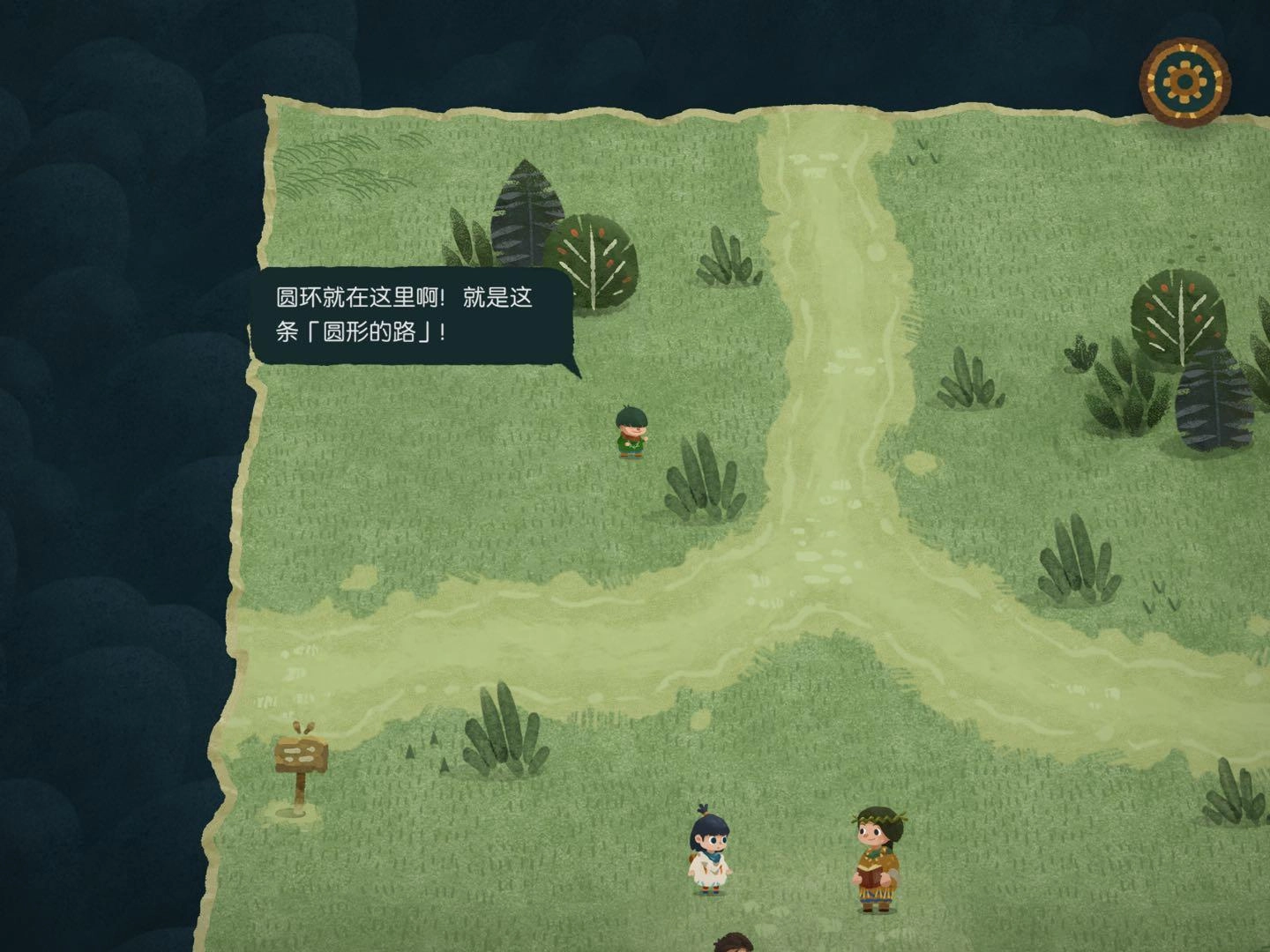 4.寻找森林的路3,将地图碎片放到风吹树偏向的方向即可,进入地图碎片时出现音符即正确,出现问号时即错误