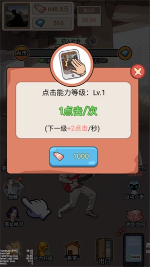 1、点击屏幕进行乞讨操作能够获取金钱,进而提升自身地位