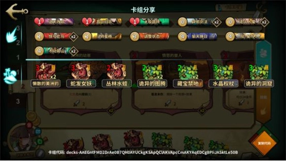 2、这套卡组比较昂贵,岛屿卡一共2橙5紫1蓝2绿 5080尘,岛屿组件围绕让别人减防自己过牌展开,如果不想浪费尘可以随便组合不影响大局,较好的替换卡牌推荐有:危险岛屿:白狼王 好斗的兽人 绯红湖泊 恶臭的软泥 迷踪侠影 愤怒的兽人
