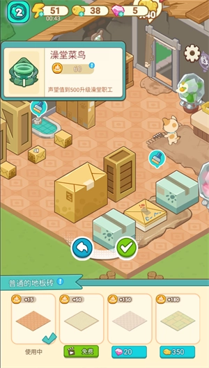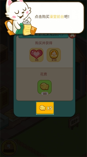 3、猫老板的挑战:游戏中的猫老板可能会带来一些麻烦,玩家需要小心应对,确保澡堂运营顺利。