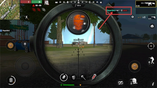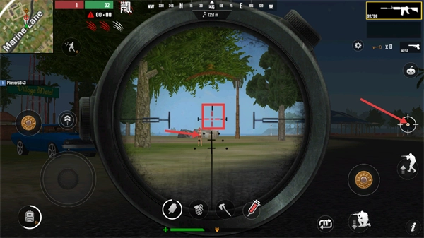 3、开启瞄准镜功能锁定远处敌方目标,调整准星对准目标位置,借助武器执行远程攻击,提升击杀效率。