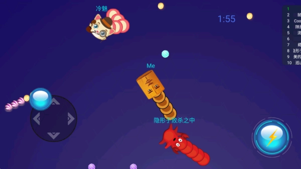 1、吃掉地图里的能量点,这种资源能让蛇的身体增长得更高效,相比普通食物,它更有助于快速积累成长上的优势。