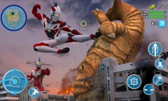 1、城市中会出现各种各样的怪物,你需要操控自己的奥特曼与之战斗。
