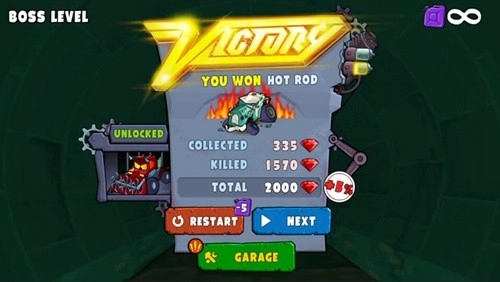 击杀boss除了可以额外新的车辆外,还可以获得大量的宝石奖励。