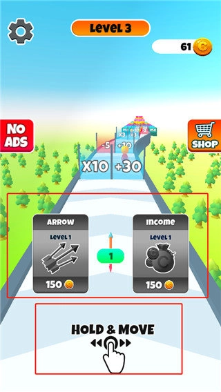 3、随意滑动屏幕后便可开始游戏,你也可以游戏开始前购买相应的道具帮助。