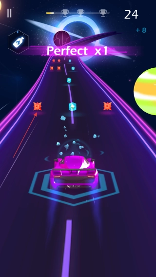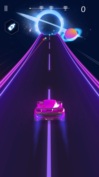 3、在驾驶过程中会有不同的音乐背景,玩家需要遵循不同音乐的节奏进行驾驶。