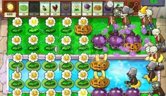 5、在这过程中留一些阳光,可以补上蒜头,南瓜头,即可轻松过关。连抗5波坐着赚金币,最后取得胜利,可以多用这个方法来赚取金币。