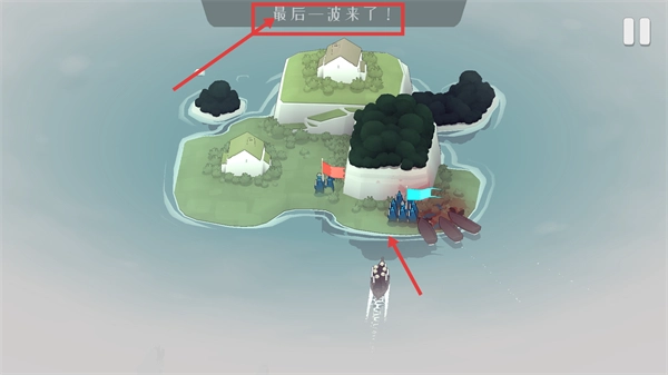 3、收到【最后一波来了!】提示后,集中部队战力,在岛屿登陆点做好最后一波敌人的歼灭准备。