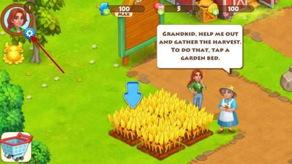 1、进行完剧情对话后,点击篮子将其拖到花园栽培房上。