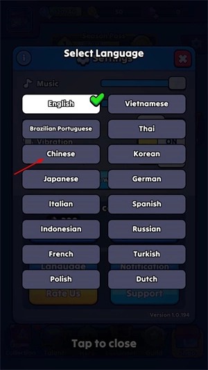 3、在语言选项中选择Chinese就可以切换成中文了。