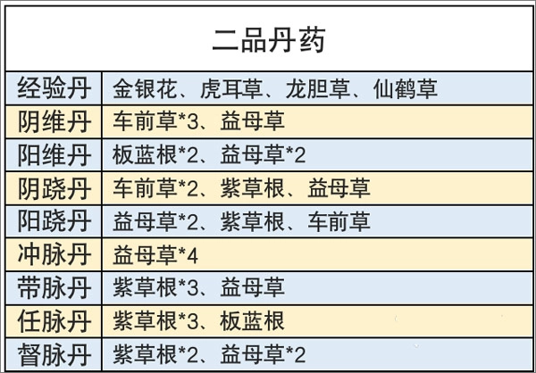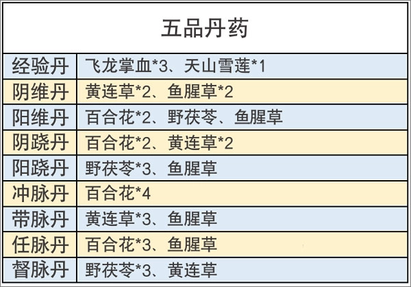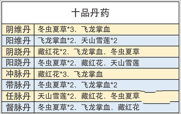 炼丹材料须通过江湖采集、江湖中的NPC商人、后山探索等途径获取。采集一次花费6体力,从商人处购买也要花费不少元宝,肝材料在小编看来可是很麻烦的一件事,所以积攒的草药一株也浪费不得,事不宜迟,小编这就将丹药配方为各位少侠们奉上。