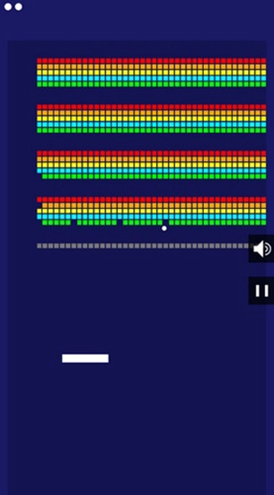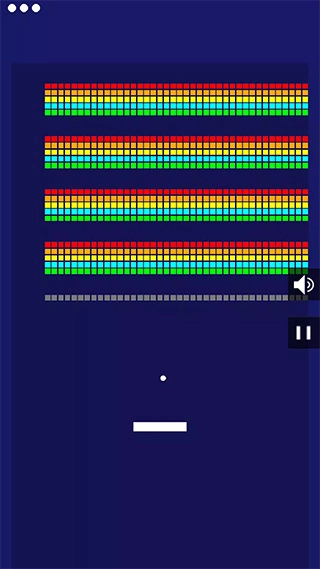 在玩这款游戏时,玩家需要操控横条让小白球反弹,以此来击碎一块块砖块。想要把所有方块都打完,关键技巧是将小白球打到两排方块的中间位置,就像下面这张图展示的那样,这样小白球就不会掉落,而是会一直在上方持续反弹。