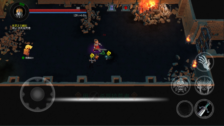 3、游戏操作其实很简单,左侧用来移动,右侧则是攻击功能