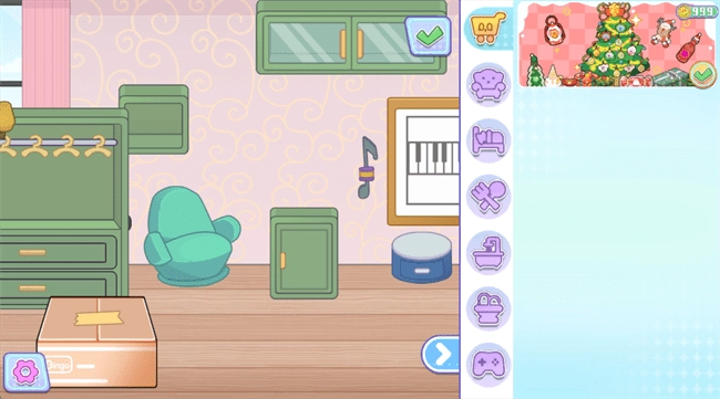 3、游戏中的房间都可以自由搭配,各种家具可以任意搭配