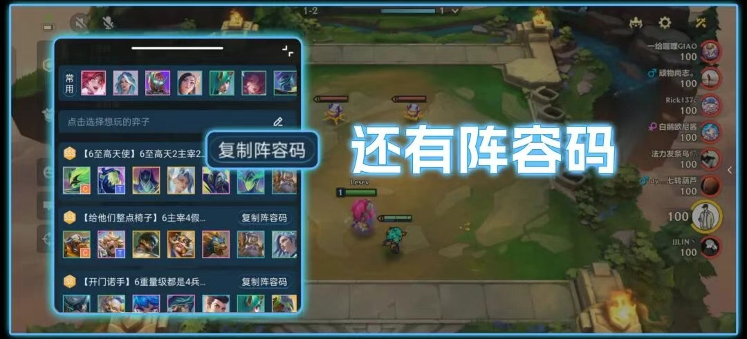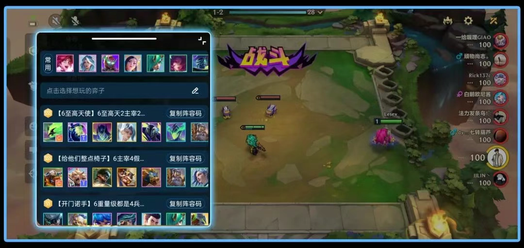 1、开启该功能后,游戏内会展示热门阵容推荐,开局就能挑选心仪或适配的阵容,每套阵容都配有阵容码。
