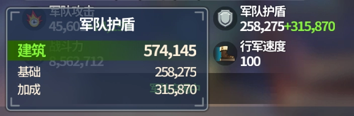 军队护盾其实就是建筑护盾,同样是由【基础】和【加成】两部分构成!