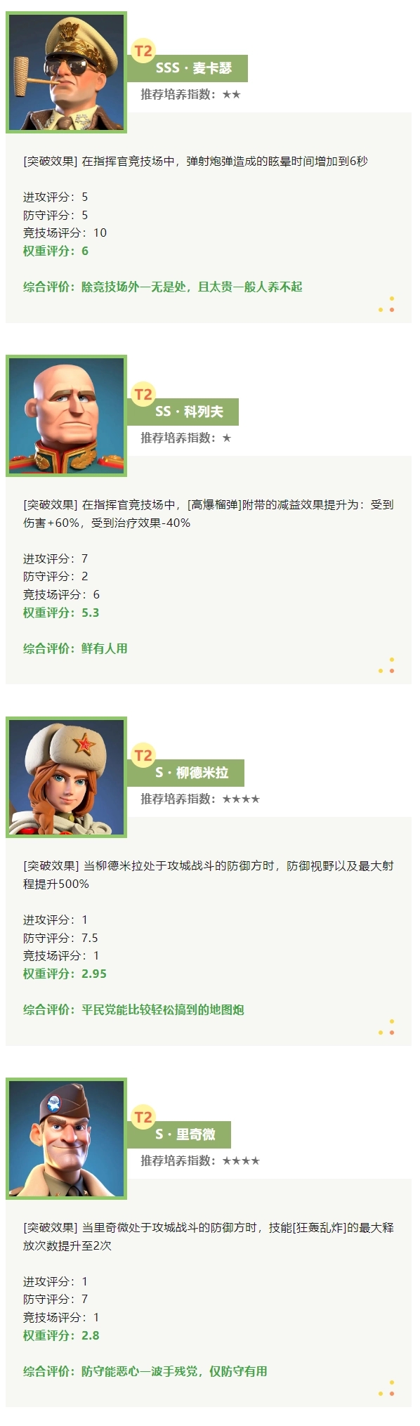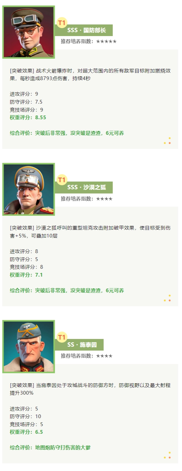 统帅们只要了解培养方向,冲榜就会更加轻松!