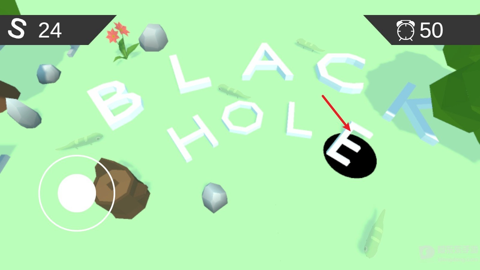 1. 通过左侧的摇杆来控制黑洞的移动。