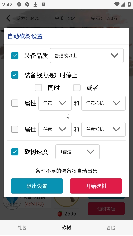 可以自定义设置砍树。