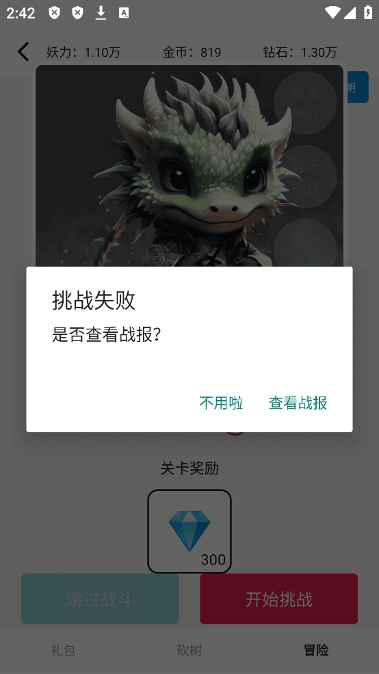挑战boss,一键就能知道胜负,省去繁杂的战斗过程。