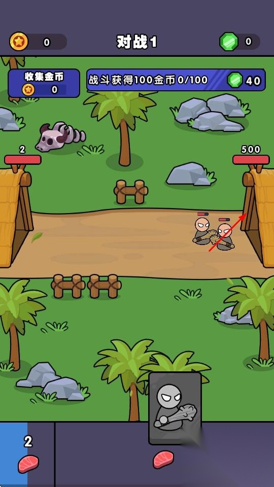 1、在“对战1”关卡,消耗食物召唤兵种,部署到路径,与敌方单位战斗,获取金币。