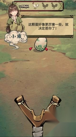 1、首先,进入主页面后先完成新手教程,用弹弓击打鸡蛋,鸡蛋破壳后出现的就是你的战斗鸡啦。