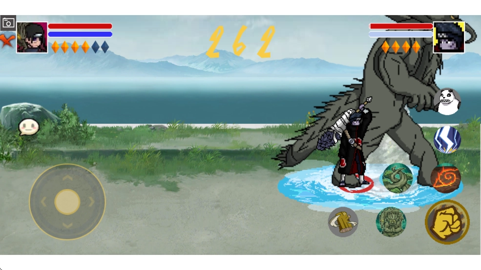 3. 运用经典复古的像素画风,打造出一批英气逼人的忍者形象,玩家能够操控这些角色,与源自不同动漫作品的角色进行紧张刺激的对战,感受别具一格的格斗狂欢。
