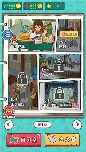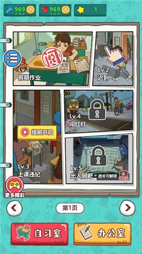 2、轻松搞笑的卡通画风搭配趣味寻物和放置玩法结合,深入体会班主任工作的艰难。