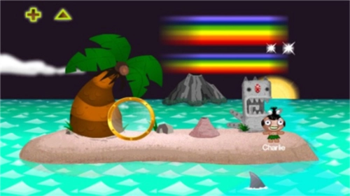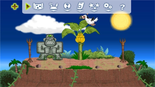 3.在banana tree这个游戏里,点香蕉可以把猴子引出来,你要把猴子放到小土人附近,看猴子恶作剧。树的左侧有个雕像,把土人放到雕像里,会引出大猩猩,它会把雕像里的小人带走,然后出现个不怕死的小人,叫道“i'll save you”,到山下去了。在这个游戏里(有点像是mario)用重力感应来操控小土人左右前进,点屏幕右边使他跳跃起来,点屏幕左上部分使他攀爬楼梯,小心障碍物哦。