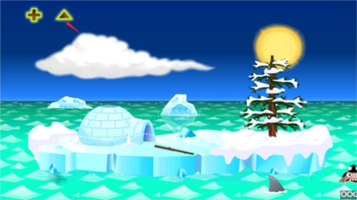 6.把小人放到冰窟窿上(这时可以把太阳调回正常的大小),里面的乌贼会伸出头来要吃土人,你当然可以直接给他算了,但是如果你不松手,乌贼会把土人的身体吃走,你抓着脑袋……