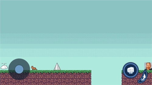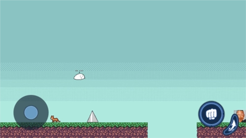 2、点击右侧的箭头再滑动左侧的摇杆可以跳跃过三角尖尖。