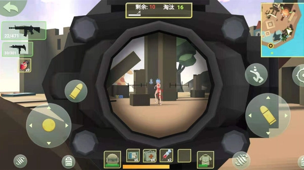 《奇葩吃鸡派对》是一款玩法十分独特的射击游戏,保留了经典的吃鸡核心玩法,但对部分内容与设定做出了创新调整。在这里,你能体验到更多惊险刺激的玩法,在危机四伏的世界里奋力求生,还可以从场景中搜集到各式各样的武器。