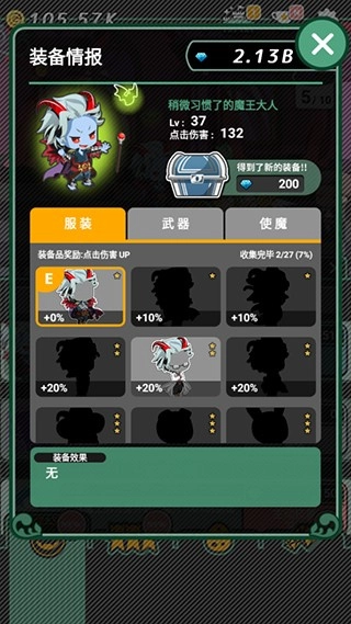 1、这里有上百种魔王装备的搭配方式,不仅能提升魔王的实力,还能看到身着搞笑小丑装的魔王呢。