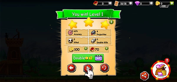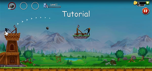 4、通过滑动屏幕来控制弹弓和选择的张力,精确计算投掷石块的角度进行发射;