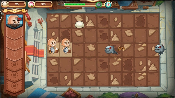 1、刚开始体验时,需要收集掉落的包子放到角色那里来击退饿魔;包小龙挺实用的,它能自己产出包子,还可以有效抵挡饿魔的攻击。