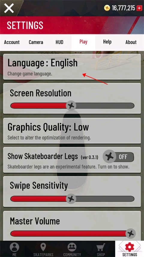 在Play子菜单中找到Language选项并点击展开。