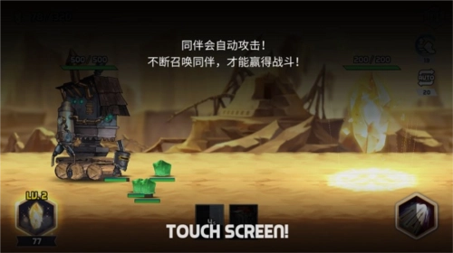 1、轻触屏幕即可召唤角色。击败怪物,推倒敌方塔楼,寻找无与伦比的神器