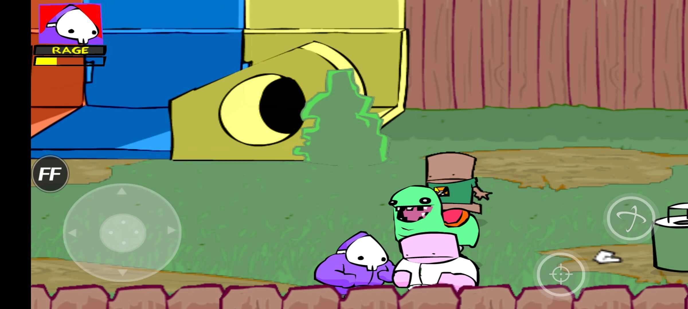 草坪上西装革履的“小黑帮”端着玩具枪乱射,子弹是马桶刷柄造型,中招后屏幕泛红。右上方停着的除草机外壳松动,一脚踹过去就是定向爆破。