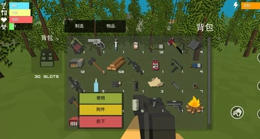 3、开启属于你的沙盒世界冒险,打造喜欢的武器和工具来面对各种类型敌人。