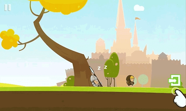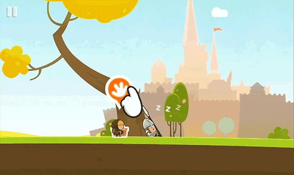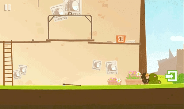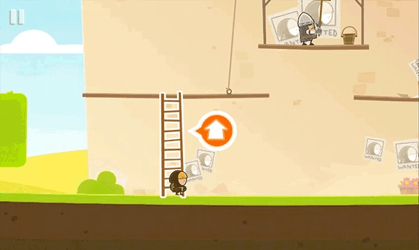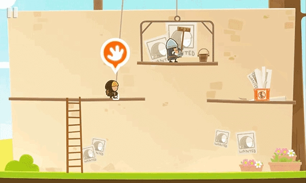 抵达平台后点击悬挂绳索处的手掌图标,绳结松脱,下方木板应声坠落,开辟出新路径。