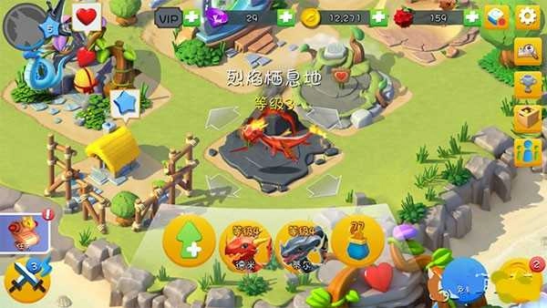 建筑布局拥有高度自由度。仓库、繁殖洞等设施长按即可拖动,配合方向标微调朝向;地面障碍物如岩石或灌木,点选后支付金币即可清除,为扩建腾出空间;更重要的是升级机制——提升建筑等级不仅能扩大龙群容量,还能加快食物产出速率与龙蛋孵化效率,让发展节奏真正跑起来。