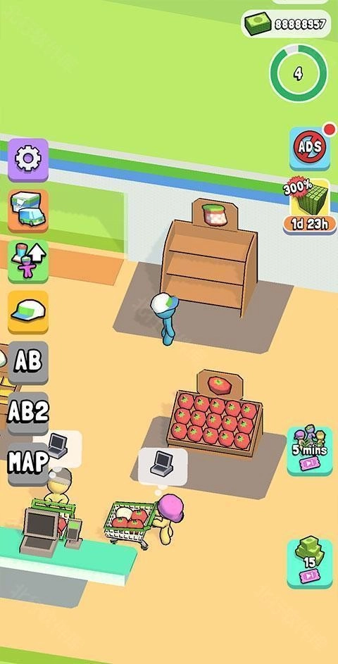 2、玩家能够自由的补充货物,努力的摆放着各种商品,招募员工,赚取大量的金币。