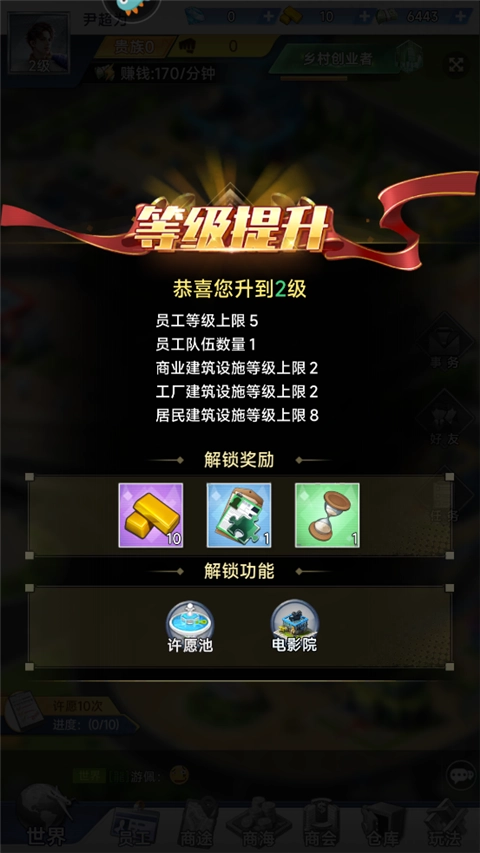 当我们的商业建筑达到指定等级,即可解锁配套新玩法,如【电影院】达到5级可解锁【电影上映】玩法