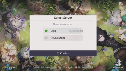 1、进入游戏后,首先映入眼帘的是服务器选择界面,界面上方显示的是亚洲服务器(建议优先选择该服务器),下方依次排列着美洲服务器与欧洲服务器。